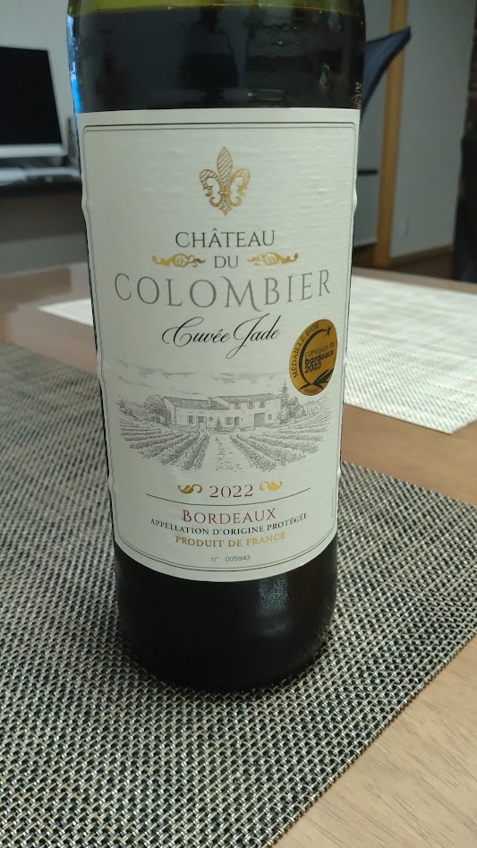 コンクール ド ボルドー 2023 で金賞に輝いた赤ワイン「シャトー デュ コロンビエ キュヴェ ジャード 2022」(フランス ボルドー)を飲んでみた。